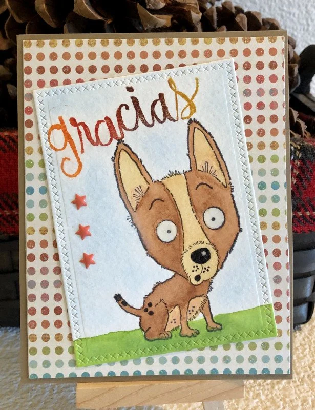 INCLUDE: brown, blue, green, orange, white, dots, stars, gradient stamped sentiment,
