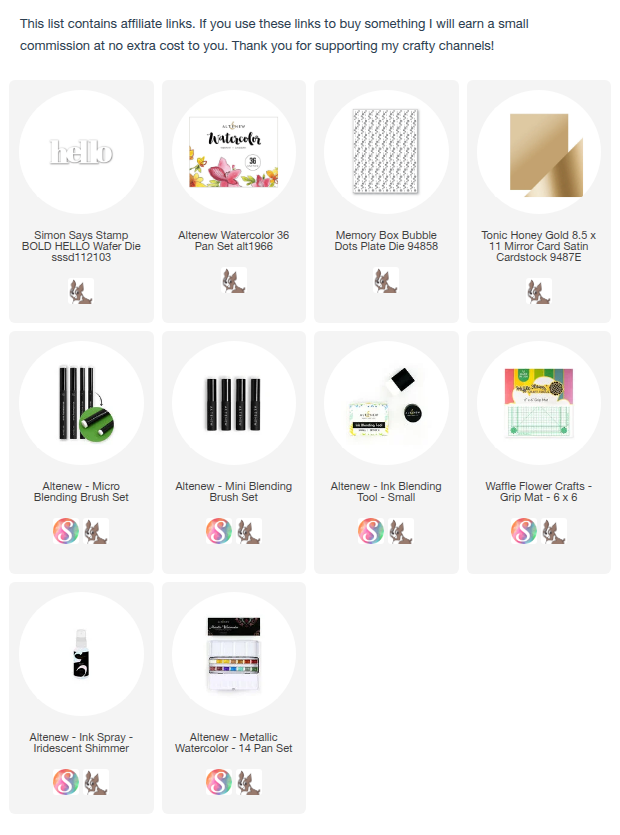 LIST: Colours (white green blue) , Techniques (watercolour imprint, die cutting) , Elements (white background, green hello die cut)
