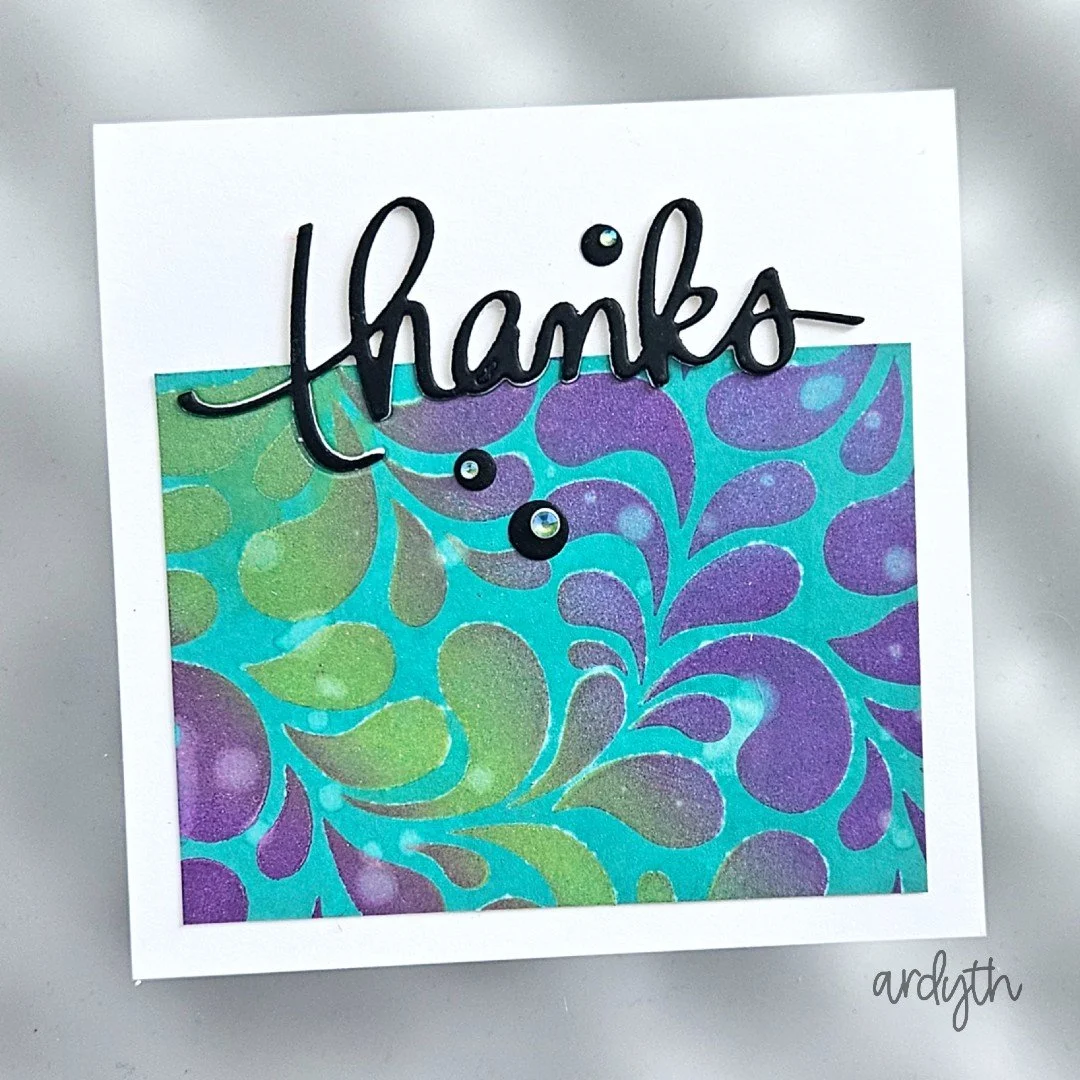INCLUDE: turquoise, colour lift technique with a stencil, black thank you sentiment,