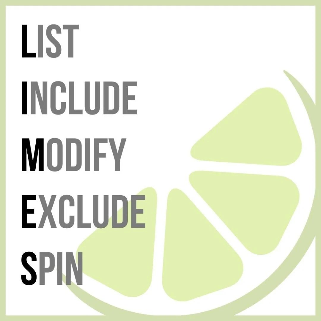 LIMES = List, Include, Modify, Exclude and Spin It's my little checklist to help you create your own inspired card without directly copying! It's perfect when you don't have the exact supplies used in the inspiration or you just want to use the inspiration as a jumping off point!